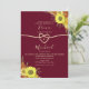Vintage élégant faire-part de mariage bordeaux rustique avec script de calligraphie branché, faux coeur de corde dorée et de beaux tournesols. Le meilleur choix pour les mariages de automne chics.