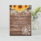 Doté de jolis tournesols, de lampes à cordes, de jarres de maçon et de bouquets fleurs sauvages sur un arrière - plan rustique en bois. Cette élégante invitation de mariage peut être personnalisée avec vos informations spéciales de jour de mariage. Le verso présente vos initiales monographiques dans un tournesol correspondant. Conçu par Thisisnotme©