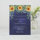 Un fond de couleur bleu marine orné de tournesols et d'eucalyptus. La couleur bleue est inégale. Personnalisez et ajoutez vos noms et les détails de la fête.
