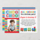 Invitation adorable de partie de thème de train de choo de choo par Maryella moderne. Perfectionnez pour la fête d'anniversaire colorée de thème du train de votre enfant !