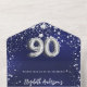 Arrière - plan bleu marine, décoré d'étoiles. La couleur bleue est inégale. Personnalisez et ajoutez le nom, les détails du parti, la date RSVP, l'adresse et le nom de retour. Le numéro 90 est écrit avec une police de style ballon.