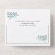 Vintage crête héraldique verte à feuillage persistant avec initiales toutes en un faire-part de mariage. Il présente un cadre floral avec votre monogramme dans une crête héraldique et des fleurs, feuilles et grenades. Le RSVP arraché peut être détaché.