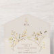 Cette faire-part de mariage tout-en-un est dotée d'un arrière - plan doux et neutre, aux accents floraux d'or et de blush, alliant votre invitation et RSVP dans un design élégant et pratique. La disposition pliable avec panneau RSVP préadressé est idéale pour les mariages rustiques, romantiques et botaniques à la recherche de simplicité et de charme.
