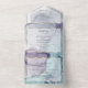 All in One Mariage - Ethereal splash of alcool ink taches dans les nuances de bleu océanique, turquoise et muet améthyste violet - chaque section surlignée avec un cadre d'or blanc pur encadré d'or doré pour un appel éthérée un design abstrait moderne pour un tout en un faire-part de mariage complet avec un choix de repas détachable préadressable rsvp pour vos invités à envoyer facilement faire-part de mariage - Facile à customiser modèle.