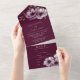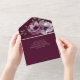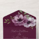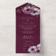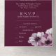 Cette faire-part de mariage fleurie romantique présente un design tout-en-un avec une carte R.S.V.P. incluse en bas. L'arrière - plan est une élégante couleur merlot, avec des fleurs d'anémones aquarellées. Un délicat bouquet d'anémones est représenté sur le rabat avant, et deux sur la partie intérieure.