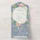 Invitation Tout En Un Aquarelle Florale sur Mariage bleu Dusty