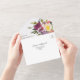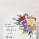 Ces invitations de mariage présentent un design floral d'aquarelle moderne avec des fleurs et du feuillage bordeaux, violets et roses. Des articles de papeterie correspondants sont également disponibles.
