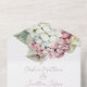 Cette faire-part de mariage romantique à fleurs est ornée d'hydrangées roses et blanches sur un arrière - plan blanc. Un délicat bouquet de fleurs d'hydrangée est représenté à l'avant, et deux à l'intérieur.
