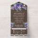 Invitation Tout En Un Aquarelle rustique violet anémones Mariage en bois