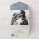 Elégant argent et bleu poussiéreux, faire-part de mariage tout-en-un d'inspiration chinoiserie, fleurie, avec un design botanique délicat et un retour photo. Parfait pour les mariages romantiques avec une touche de charme vintage. Customisez avec vos coordonnées de mariage. Ce design d'invitation est parfait pour les couples à la recherche d'une option d'invitation sophistiquée et facile à envoyer. Remarque : Cette invitation tout-en-un nécessite une enveloppe distincte pour l'envoi. Nous vous recommandons de l'apparier avec une enveloppe A9 standard (5,75 po x 8,75 po) pour un meilleur ajustement.