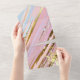 Arrière - plan à texture rose et bleue, peint avec de grandes touches de brosse, décoré de feuille d'or. Grunge Texture.