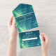 Lumières du Nord, Aurora borealis, Galaxy, nuit étoilée, ciel, étoiles Tout en une invitation. Espace extérieur, bleu marine, élégante, invitation de mariage moderne. Customisez avec vos détails. Commandez à temps pour éviter une déception.
