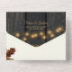 Belle rouille brûlé orange automne automne feuilles botaniques, fleurs et bordures citrouilles avec des cordes de lumières scintillantes dorées sur une grange brun foncé et l'arrière - plan d'ivoire faire un charmant élégant tout en une faire-part de mariage avec RSVP avec une écriture branchée faux script de typographie or. +++++++++++++++ Si vous n'avez pas besoin des noms et de l'adresse individuels imprimés de l'invité, il vous suffit de supprimer le texte au centre à l'arrière. ++++++++++++++ Facile à personnaliser avec vos détails ! Convient à l'automne traditionnel rustique ferme de campagne mariages de jardin extérieur de la ferme de l'automne.