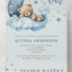 Teddy Bear nous pouvons attendre Baby shower All in One Invitation avec déchirure Diaper Raffle carte. Adorable ours en peluche brun endormi sur des nuages moelleux à côté d'une lune et d'étoiles croissant.