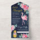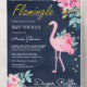 Invitation Tout En Un Baby shower de Flamant rose tropical rose marine