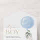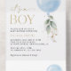 Invitations amis et famille dans le style et donner le ton pour votre journée spéciale avec cette charmante invitation baby shower. Le design présente un ballon bleu avec des feuilles d'eucalyptus sur arrière - plan blanc.