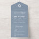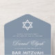 Invitation Tout En Un Bar Mitzvah Moderne Dusty Bleu Simple Blanc Script
