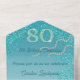 Belle Parties scintillant Bleue Turquoise avec dégradé bleu turquoise et numéro unique parties scintillant d'anniversaire 80 le tout dans une invitation.