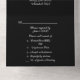 Cette jolie faire-part de mariage tout-en-un se présente en une seule pièce avec toutes les informations sur une page. Il suffit de déchirer la carte de réponse et de renvoyer la mariée par la poste. Texte blanc et éléments sur un arrière - plan totalement noir.