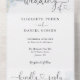 Invitation Tout En Un Bleu Aquarelle Script Coeurs QR Code Mariage