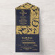 Invitation Tout En Un Bleu classique Art nouveau Mariage