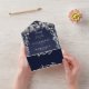 Invitation Tout En Un Bleu marine Floral Lights QR Code Mariage