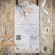 Invitation Tout En Un Bleu rustique Corbeilles et Blé Bleu QR Code