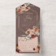 Ce design présente un cadre de bouquet floral couleur rouille, pêche, blanc et crème sur un arrière - plan de cacao doux. Les invitations tout-en-un personnalisées sont une combinaison unique d'une invitation personnalisée magnifiquement imprimée et d'une carte postale RSVP perforée facile à déchirer. Et ils sont si faciles à utiliser ! Il suffit de plier, puis de sceller le rabat arrière avec les trois autocollants clairs inclus, et le courrier. Et quand vos invités reçoivent votre invitation personnalisé, ils déchirent la carte RSVP perforée et vous la remettent dans le courrier !
