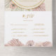Ce boho tropical botanique | phoque vert et envoyer tout en une invitation est parfait pour votre élégant mariage d'or rose, vert, pêche, floral, vert. Le design présente un cadre or ou un bouquet avec de l'herbe rose pâle moderne, de la sauge simple, de l'ivoire, une feuille de palmier à champagne et une végétation de plage classique. Les fleurs peuvent inclure rose rose et orchidée. Le design est idéal pour un classicisme vintage en terre cuite, beige, rouille, hiver, printemps, mariage de automne. Veuillez trouver d'autres articles de papeterie mariage correspondants ou coordonnés dans le reste de la collection.