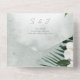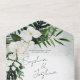 DISPONIBLE AVEC OU SANS OPTIONS DE DÎNER AU LIEU D'UN CODE QR. Ce design présente une belle végétation tropicale luxuriante et des fleurs blanches sur un arrière - plan d'aquarelle vert doux. Parfait pour la destination ou le mariage sur la plage. Créé par Simply Farmhouse Press.