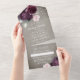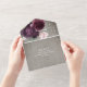 Cette invitation de mariage rustique gris présente une riche violette foncée et des roses roses rousses sur l'arrière - plan en bois gris avec des lampes à cordes brillantes. Parfait pour un mariage rustique. Toutes dans une seule invitation comprennent les infos du mariage et la carte postale RSVP que vos invités et envoyer. Profitez-en !