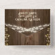 Élégant arrière - plan en bois foncé entouré de feuilles et de lumières de fête suspendues. Ces faire-part de mariage comprennent les informations du mariage et la carte postale RSVP que vos invités déchirent et envoient. Les enveloppes ne sont pas nécessaires. Parfait pour un mariage d'été, d'automne, de printemps, de Boho ou de plein air !