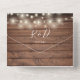 Le tout dans un faire-part de mariage avec de jolies lampes à cordes, une guirlande florale dessinée à la main et une typographie chic sur un arrière - plan de panneaux de bois rustique. L'invitation comprend un RSVP perforé avec votre code QR du site Web mariage et des détails. Conçu par Thisisnotme©
