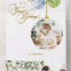 Cette carte amusante, festive et colorée présente une branche de pin à l'aquarelle avec des ornements de Noël, un texto "Bonnes Fêtes" d'or coulant avec d'élégants swashes (la couleur peut être customisée dans l'éditeur de design) et un modèle photo découpé unique en forme d'ornement avec champ de texte modifiable. Les panneaux offrent des graphiques floraux et des champs de texte supplémentaires, ainsi qu'un carte photo détachable en bonus.