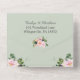 Cette belle faire-part de mariage est ornée de roses roses roses rousses, agrémentées de feuilles d'oliviers et de branches d'aqua. Le texte gris vient compléter les couleurs douces des bouquets. Les noms de la mariée et du marié sont présentés avec audace, ainsi que les détails de la date, de l'heure et du lieu du mariage. L'adresse de retour sur le dos permet aux clients d'accéder facilement à RSVP. Tous les détails, y compris la couleur du texte, sont entièrement personnalisables.