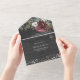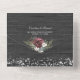 Ces invitations de mariage rustiques en bois tout-en-un qui comprennent les informations de mariage et la carte postale de réponse que vos invités détachent et renvoient. Une combinaison inspirante de roses bordeaux foncé et de fleurs de coton, de confettis argentés brillants, de feuilles de verdure sur le fond en bois. Ce design lumineux sera un succès auprès de tous vos invités ! Modifiez le texte et la couleur de fond en cliquant sur le bouton "personnaliser". Personnalisez les informations en cliquant sur le bouton "détails".
