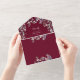 Le tout dans un faire-part de mariage avec une belle cascade de verdure fleurie, une typographie élégante, et des initiales monographiques sur un arrière - plan bordeaux. L'invitation comprend une carte RSVP perforée avec votre code QR du site Web mariage et des détails. Conçu par Thisisnotme©