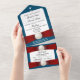 Invitation Tout En Un Burgundy & Blue Pearl Ribbon Mariage & RSVP Tout