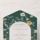IL EST ÉGALEMENT DISPONIBLE AVEC UN CODE QR, AVEC DEUX OPTIONS POUR LE DÎNER OU SANS OPTIONS POUR LE DÎNER. Ce design présente un cadre fleur sauvage doux autour d'un ovale crème sur un arrière - plan vert émeraude. Les invitations tout-en-un personnalisées sont une combinaison unique d'une invitation personnalisée magnifiquement imprimée et d'une carte postale RSVP perforée facile à déchirer. Et ils sont si faciles à utiliser ! Il suffit de plier, puis de sceller le rabat arrière avec les trois autocollants clairs inclus, et le courrier. Et quand vos invités reçoivent votre invitation personnalisé, ils déchirent la carte RSVP perforée et vous la remettent dans le courrier !