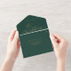 Ce délicat mariage vert de calligraphie dorée tout en une seule invitation est parfait pour un mariage moderne. Le design minimaliste romantique présente une belle et élégante typographie de champagne jaune doré sur un arrière - plan vert émeraude à l'allure simple et épurée. Écrivez vos adresses d'invités à l'arrière de l'invitation pliée, ou achetez les autocollants de étiquette de adresse d'invités de coordination (vendus séparément).