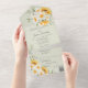 Cette Faire-part de mariage All-in-One présente de jolies collections de marguerites et de tournesols sur un arrière - plan vert sage et doux. C'est le choix idéal pour faire de votre mariage une oeuvre d'art. Les invitations de mariage tout-en-un sont à la fois belles et pratiques en combinant le faire-part de mariage avec une carte postale RSVP perforée facile à retirer. Ils sont aussi rapides et faciles à préparer pour l'envoi. Adressez-vous simplement à l'invitation, pliez le rabat arrière et scellez avec les autocollants clairs inclus. Une fois que vos invités reçoivent l'invitation préadressée, ils arrachent simplement la carte perforée RSVP et la déposez dans le courrier. L'ajout du code QR permet à vos invités d'accéder facilement à votre site mariage pour obtenir des informations, notamment les détails de la réception et les choix de dîner !