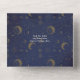 Ce faire-part de mariage photo tout-en-un présente une typographie élégante sur une lune céleste et des étoiles arrière - plan. L'invitation comprend une carte RSVP perforée avec votre code QR du site Web mariage. Conçu par Thisisnotme©