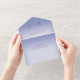 DISPONIBLE AVEC OU SANS CODE QR À ANALYSER. Ce design simple mais élégant a un look moderne, avec deux anneaux de mariage en or entrelacés sur un arrière - plan bleu perwinkle doux. Les invitations tout-en-un personnalisées sont une combinaison unique d'une invitation personnalisée magnifiquement imprimée et d'une carte postale RSVP perforée facile à déchirer. Et ils sont si faciles à utiliser ! Il suffit de plier, puis de sceller le rabat arrière avec les trois autocollants clairs inclus, et le courrier. Et quand vos invités reçoivent votre invitation personnalisé, ils déchirent la carte RSVP perforée et vous la remettent dans le courrier !