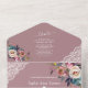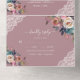 TOUTE EN UNE invitation. En incluant les détails et RSVP sur la faire-part de mariage plutôt que sur une carte séparée, c'est un bon choix. Décor de fantaisie avec délicat bleu poussiéreux, bouquets d'aquarelle brumeux rose, cloison fleurie, coins dentelles, sur un arrière - plan rose brumeux. En tant que modèle, il est facile d'ajouter vos informations, de modifier les polices, les couleurs. Pour les articles correspondants, s'il vous plaît, visitez ma collection de fleurs Roses Dusty.