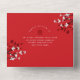 Fleurs de cerisiers rouges/blancs/sakura fleurs de printemps et simple double bonheur. Un mariage chinois moderne double face all-in-one carte d'invitation. Fleurs de cerisiers rouges et blancs orientaux ou fleurs de sakura japonaises avec un symbole centré double bonheur sur un arrière - plan blanc. Un design élégant et romantique à thème asiatique à thème mariage floral, classique et chic. Les cerisiers fleurissent au printemps et symbolisent de nouveaux débuts, l'amour et l'amour dans la culture japonaise, coréenne et chinoise. Le double bonheur est un symbole de chance et de bonheur utilisé dans tous les mariages et célébrations chinois traditionnels. Tout le texte est entièrement personnalisable pour n'importe quel événement. Vous pouvez facilement ajouter plus de texte / info / détails et/ou photos à l'avant et à l'arrière de cette carte. Il est possible d'entrer votre propre texte chinois personnalisé à partir d'un autre programme ou fichier en utilisant la fonction "copier + coller". L'arrière - plan peut être changé en n'importe quelle couleur de votre choix. Tout le texte est modifiable. Illustration de fat*fa*tin. Facile à personnaliser avec votre propre message texte, nom, photo ou image. D'autres styles de police, filtres photo et fonctions d'édition sont disponibles sur la page "modifier la conception". ・ ・ ・ ・ ・ ・ ・ ・ ・ www.zazzle.com/fatfatin_blue_knot