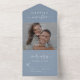 Invitation Tout En Un Chic Script Photo 0verlay Dusty Blue Mariage