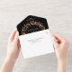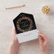 Ces invitations de mariage comportent une couronne de feuillage de chute d'aquarelle avec un arrière - plan noir. Des articles de papeterie correspondants sont également disponibles.