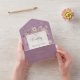 DISPONIBLE AVEC OU SANS CODE QR OU OPTIONS DE SÉLECTION DE DÎNER. Ce design présente un arrière - plan violet lavande vieilli avec un cadre de texte blanc doux entouré de fleurs sauvages délicats. Créé par Simply Farmhouse Press.