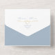 Elégante faire-part de mariage tout-en-un à cordon bleu et or poussiéreux avec une typographie minimaliste moderne et un sceau romantique & format d'envoi. Cette invitation de mariage pratique comprend une carte postale RSVP détachable avec un code QR pour des réponses faciles, plus de l'espace pour ajouter votre site Web mariage pour les détails des invités. Aucune enveloppe séparée n'est nécessaire - simplement plier, sceller et envoyer. Un choix chic et économique pour les couples qui souhaitent séjourner en mariage romantique, moderne ou minimaliste. Parfait pour les mariages élégants en toute saison.