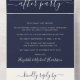 Élégante invitation de mariage ou d'annonce de mariage intime et de réception de mariage en bleu marine foncé et crème clair. "Happily Ever After Party" est écrit dans un mélange de typographie simple et d'un script élégant avec des fioritures. Entrez l'adresse URL de votre site web de mariage pour créer un code QR permettant à vos invités de répondre en ligne et d'obtenir des informations sur l'hébergement, les directions, les soirées de la veille et d'autres détails. Une carte postale de réponse détachable permet une réponse sans enveloppe de la part de vos invités qui préfèrent répondre par courrier.